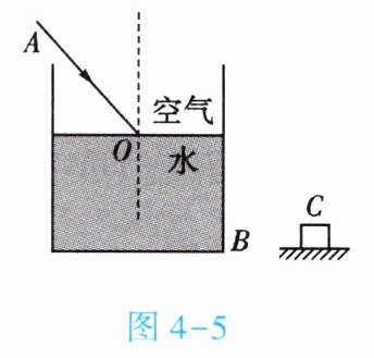 5. (★★★)如图4-5所示为“探究光折射时的特点”的实验,让光束斜射入装有水的杯中。