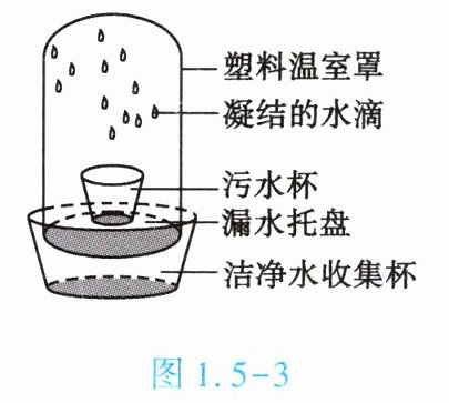 3. (★★)我国属于缺水的国家,污水净化有重要的意义。如图 1.5 - 3 所示是某同学发明的太阳能净水器,它在工作过程中发生的物态变化是先______再______。(均填物态变化名称)