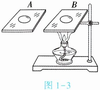 4. (★★)小明在无风的环境下探究液体的温度对蒸发快慢的影响,进行了如图 1 - 3 所示的对比操作。在实验前需要控制变量,除 $A$、$B$ 两块玻璃板要完全相同外,还要控制滴在玻璃板上的两滴水等量且______相同。
