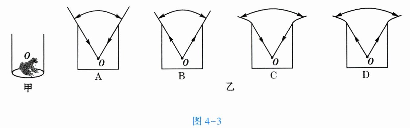 8. 如图 4 - 3 甲所示,枯井中的青蛙位于井底 $ O $ 点“坐井观天”,图 4 - 3 乙中青蛙通过井口观察范围正确的光路图是【 】