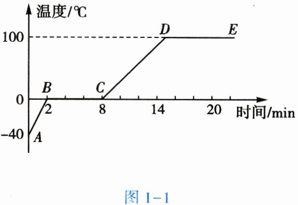 14. (双选)小丽同学对冰加热,她将冰熔化成水直到沸腾的过程,绘制成如图 1-1 所示的温度随时间变化的图像,下列分析正确的是 【 】