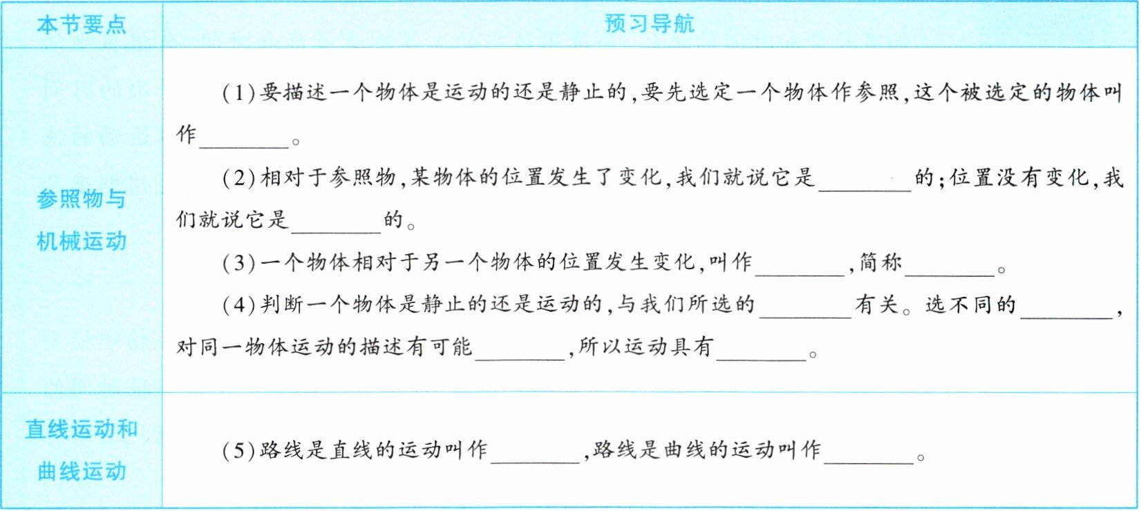 |直线运动和曲线运动|(5)路线是直线的运动叫作______,路线是曲线的运动叫作______。|