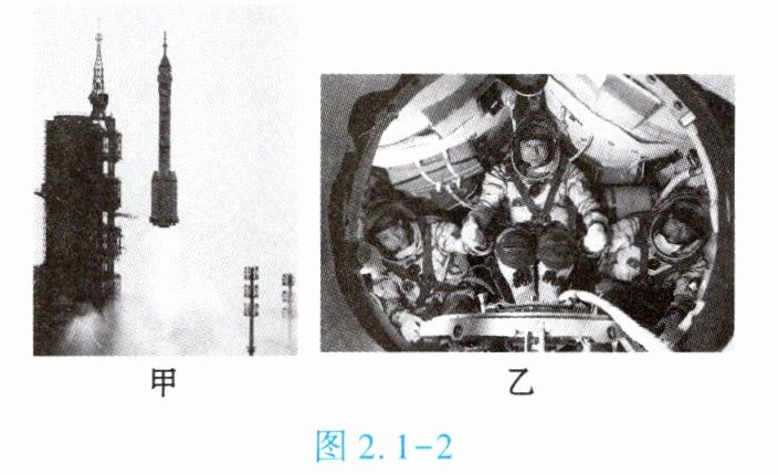 2. (★)(2023·北京)2023 年 5 月 30 日,搭载“神舟十六号”载人飞船的长征二号 F 遥十六运载火箭,在酒泉卫星发射中心成功发射。图 2.1 - 2 中所示的是火箭上升(图甲)和此过程中航天员在舱内(图乙)的情境,下列说法正确的是【 】