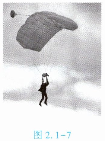 5. (★★★)图 2.1 - 7 所示的是运动员在空中降落时的情境。请针对运动员匀速降落的过程,从运动和静止的相对性角度提出一个问题并回答。
