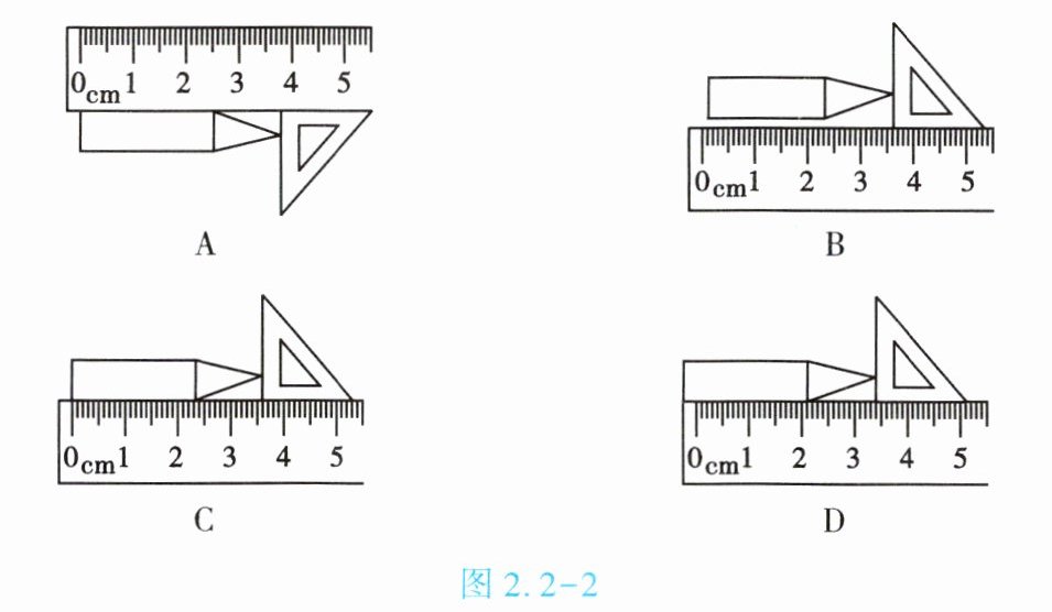 4. (★★)如图2.2 - 2所示,用刻度尺测量铅笔的长度,测量方法正确的是【 】