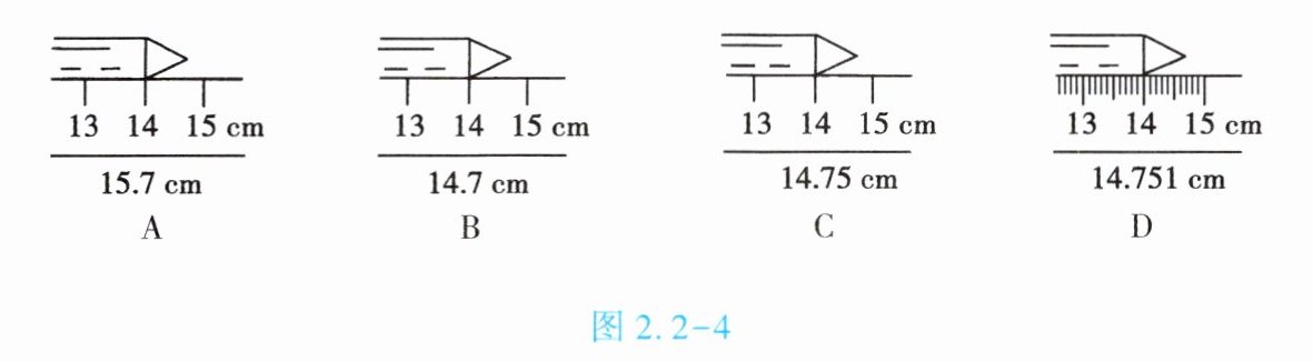 5. (★★)某同学用分度值不同的直尺测量同一支铅笔的长度,测量结果如图2.2 - 4所示,则测量结果的记录正确的是【 】
