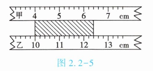 6. (★★)用甲、乙两个刻度尺测量同一木块的长度,如图2.2 - 5所示,对两个刻度尺的精确度、放置的正确情况及木块的长度,下面判断正确的是【 】