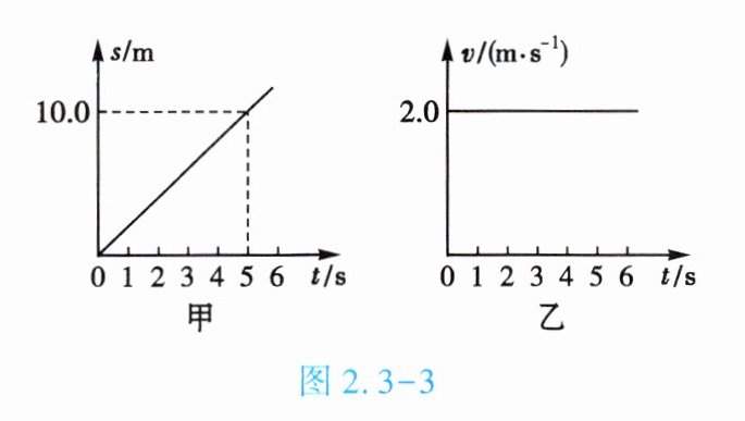 7. ($\star\star\star$)如图 2.3 - 3 所示,图甲是小车甲运动的 $s - t$ 图像,图乙是小车乙运动的 $v - t$ 图像,由图像可知【 】