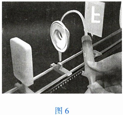 11. (2023·宜昌)小华用弹性膜充水制作了一个水凸透镜,通过注射器注水或抽水改变透镜的厚度,图 6 是他用其模拟眼睛看物体的实验装置。模拟正常眼睛时,固定透镜,将一个 F 形光源放在合适的位置后,调节光屏得到清晰的像,下列说法正确的是【 】