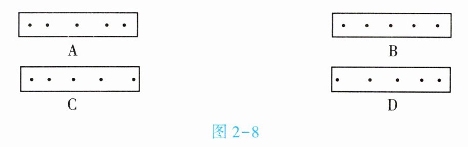 9. ($★★$)图2 - 8是利用每秒闪光10次的照相装置分别拍摄到的四个小球的频闪照片,其中表示小球在做匀速直线运动的是【 】
