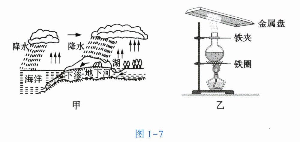 (3) 图 1-7 乙是模拟大自然中雨的形成的实验装置图。