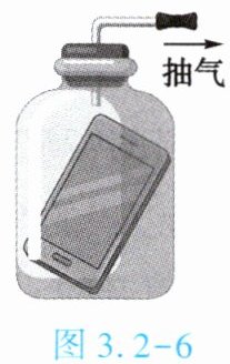 5. ($\star\star\star$)(2023·山东潍坊)如图$3.2 - 6$所示,将正在响铃的手机悬挂于广口瓶内,封闭瓶口,逐渐抽出其中的空气。对比抽气前后从瓶中传出的响铃声音,下列分析正确的是【 】