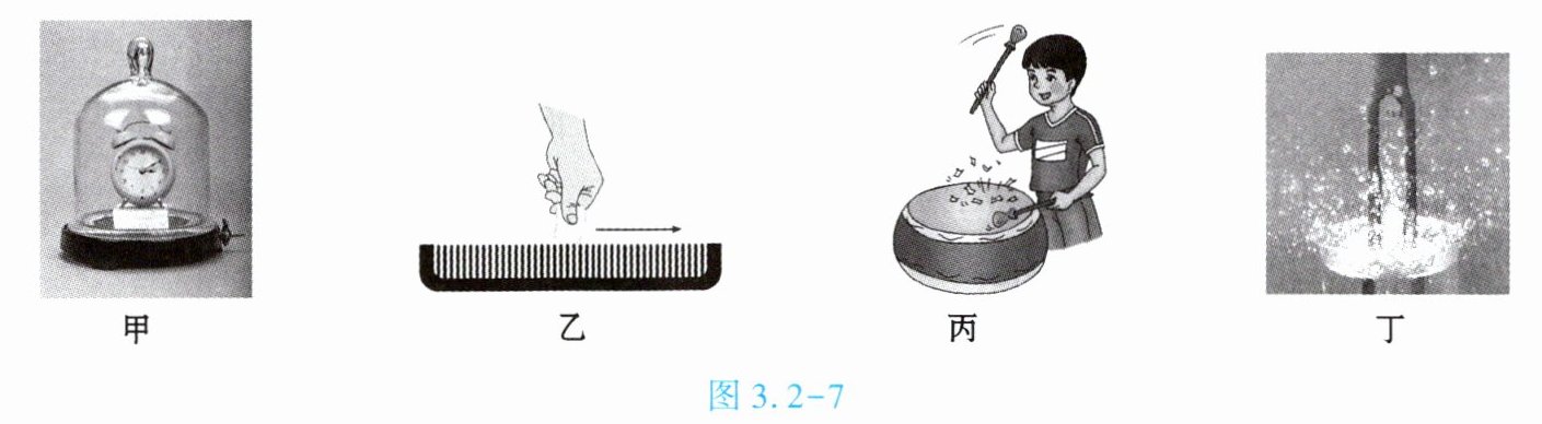 6. ($\star\star\star$)为了探究声音的响度与振幅的关系,小明设计了如图$3.2 - 7$所示的几个实验,你认为能够完成这个探究目的是【 】