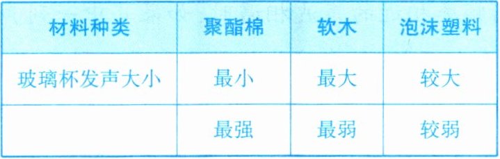 5. 随着生活水平的日益提高,不少场所的装修会考虑声学吸音效果。小明同学想比较几种常见装修材料的吸音性能,他找来厚度相同的四种小块材料(聚酯棉、软木和泡沫塑料),进行了如图3.3-2所示实验:桌面上放一个玻璃杯,在玻璃杯下分别放上待测试的小块材料,将悬挂在细线下的小球拉到同一高度释放去敲击玻璃杯,仔细比较玻璃杯发出的声音大小。