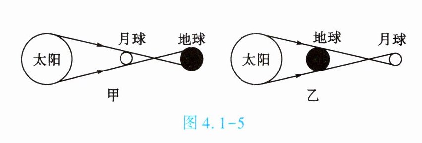 2. (★★)如图4.1-4所示,2023年全球首次日食在4月20日正式上演,系罕见日全环食。日环食是日食的一种,发生时太阳的中心部分黑暗,边缘仍然明亮,形成光环。从物理学的角度来说,日食属于光的____现象;如图4.1-5所示,能描述其形成原因的是____(填“甲”或“乙”)图。
