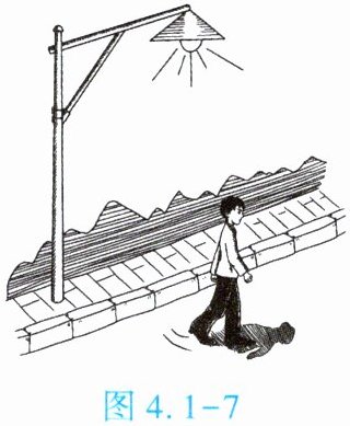 4. (★★)如图4.1-7所示,某人经过一盏路灯时,灯光照射人所形成的影子的长度变化是【 】
