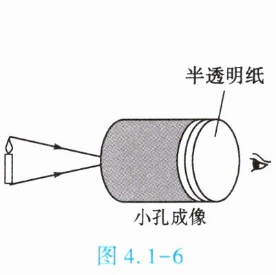3. (★★)小明按图4.1-6所示装置做小孔成像实验。如果易拉罐底部的小孔是三角形,则他在半透明纸上看到的像是【 】