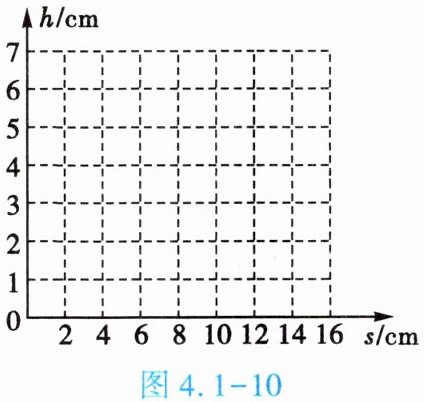 (2)该同学发现蜡烛和小孔的位置固定后,像离小孔越远,像就越大。他测出了不同距离时像的高度(见下表)。请根据表中的数据,在图4.1-10的坐标轴中画出h与s的关系图像。