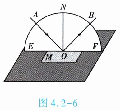 5. (★★)在探究光的反射定律实验中,小明选用了平面镜、硬纸板、激光笔和铅笔进行实验。硬纸板垂直立在平面镜上,纸板由 $ E $、$ F $ 两部分组成,可绕与平面镜垂直的接缝 $ ON $ 转动,如图 4.2 - 6 所示。