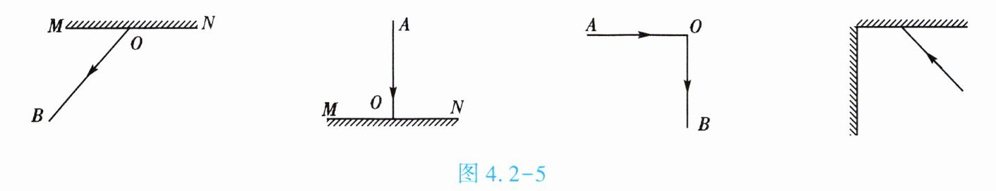 4. (★★)根据题中给出的条件(如图 4.2 - 5 所示),画出入射光线、反射光线或平面镜的位置。