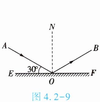 3. (★★)如图 4.2 - 9 所示,早晨的太阳光与水平方向成 $ 30° $ 角射到一水平放置的平面镜上,经镜面反射后,反射角为______。随着时间的推移,从早晨到中午,反射角将______(填“增大”“不变”或“减小”)。
