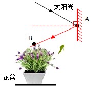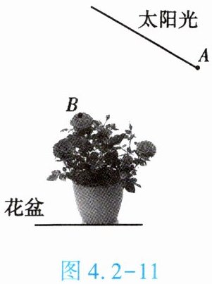 5. (★★)小明的妈妈喜欢在家中养花,为了使客厅里的花见到阳光,小明想让室外太阳光照射到盆中花上的 $ B $ 处,请你在图 4.2 - 11 中画出过 $ A $ 点放置的平面镜并完成光路图。