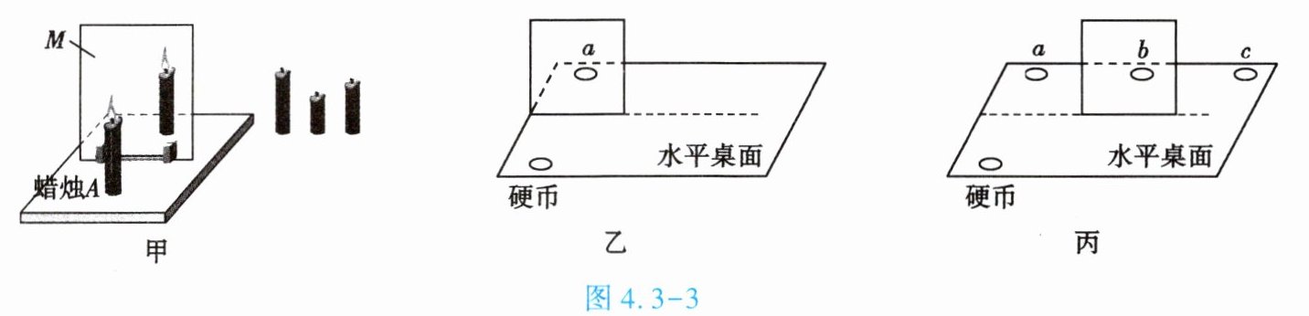 (3)如图4.3-3乙所示,将一枚硬币放在竖直的平面镜前,硬币的像在a处;将平面镜平移至图4.3-3丙所示的位置时,硬币的成像情况是______(填字母)。