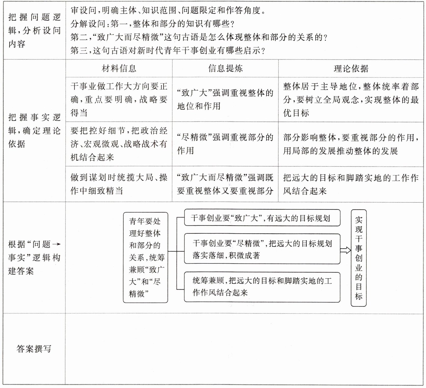 结合材料,运用整体和部分的知识,分析说明“致广大而尽精微”这句古语对新时代青年干事创业的启示。