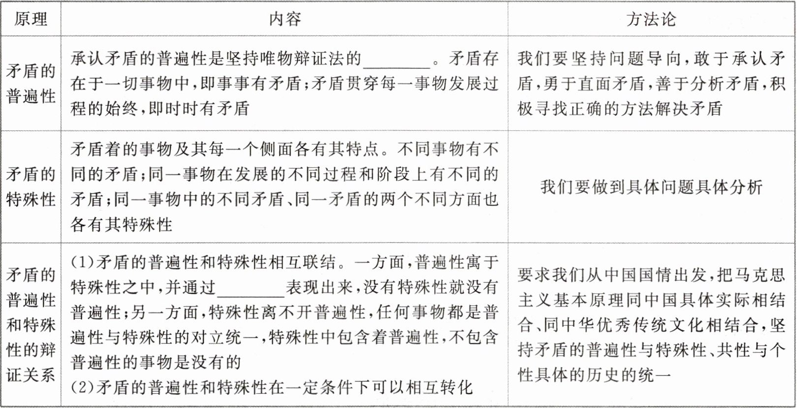 (2) 矛盾的普遍性和特殊性是共性和个性、绝对和相对的关系,不是整体和部分的关系。
