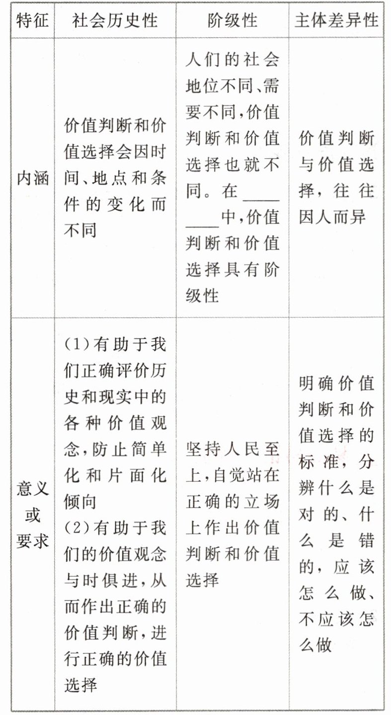 注意:价值判断与价值选择的社会历史性和主体差异性是在任何社会都具有的特征,但阶级性这一特征只在阶级社会中具有。