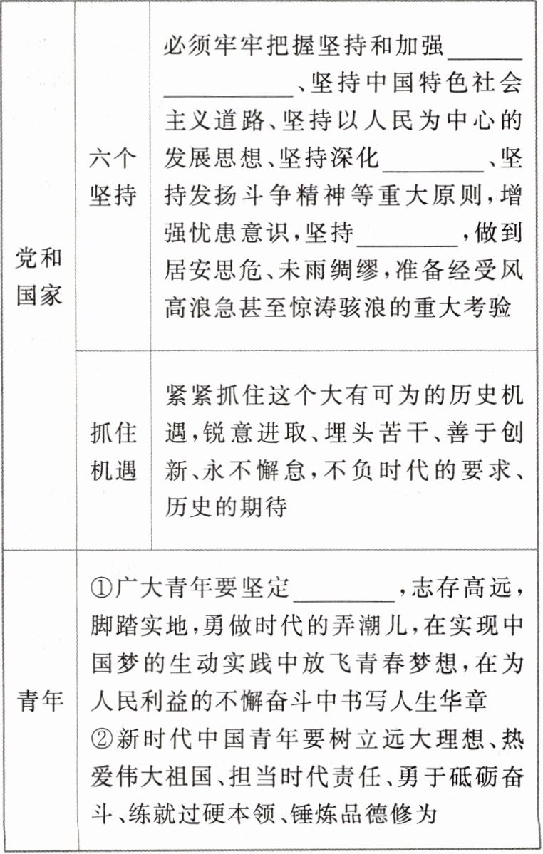 (2)党的全面领导 改革开放 底线思维 理想信念