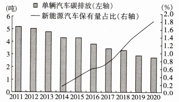 1.B 据图可知,我国汽车产业单辆汽车碳排放量逐年下降,而新能源汽车保有量则增长迅速,说明我国汽车产业发展体现了绿色发展的理念和创新发展的理念,①③符合题意;绿色发展注重的是解决人与自然和谐共生问题,图示表明我国新能源汽车产业贯彻绿色发展理念,但看不出缓解了人与自然的矛盾,也看不出改变了人们的生产生活方式,②④与题意不符。