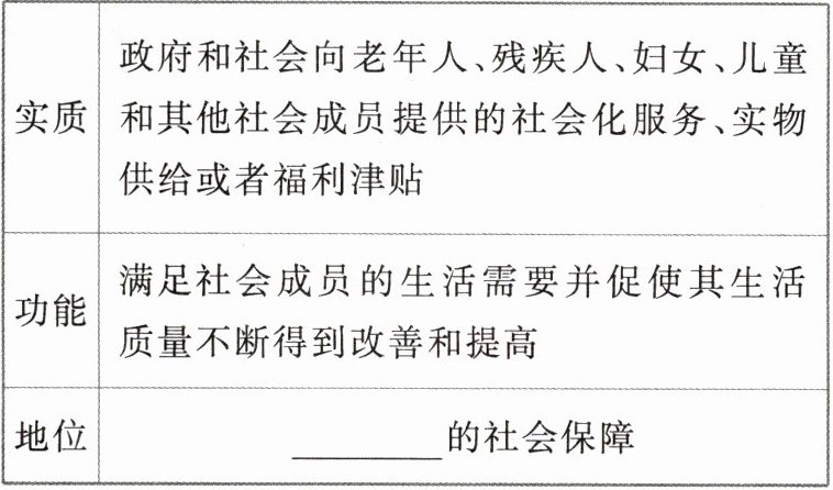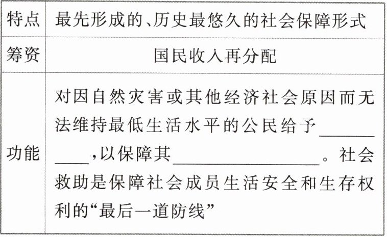 (3)核心 无偿帮助 最低生活水平 最高层次 现役军人、复员退伍军人以及军烈属