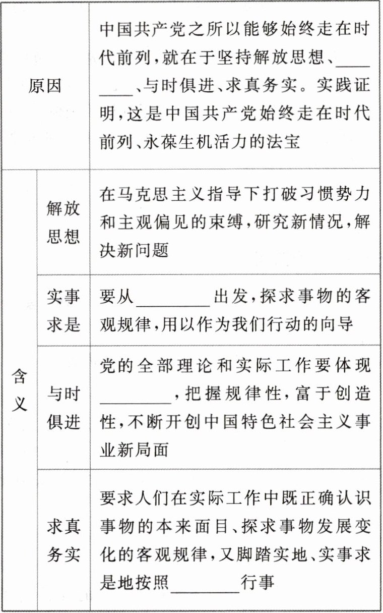 2坚持解放思想、实事求是、与时俱进、求真务实是中国共产党始终走在时代前列、永葆生机活力的法宝。