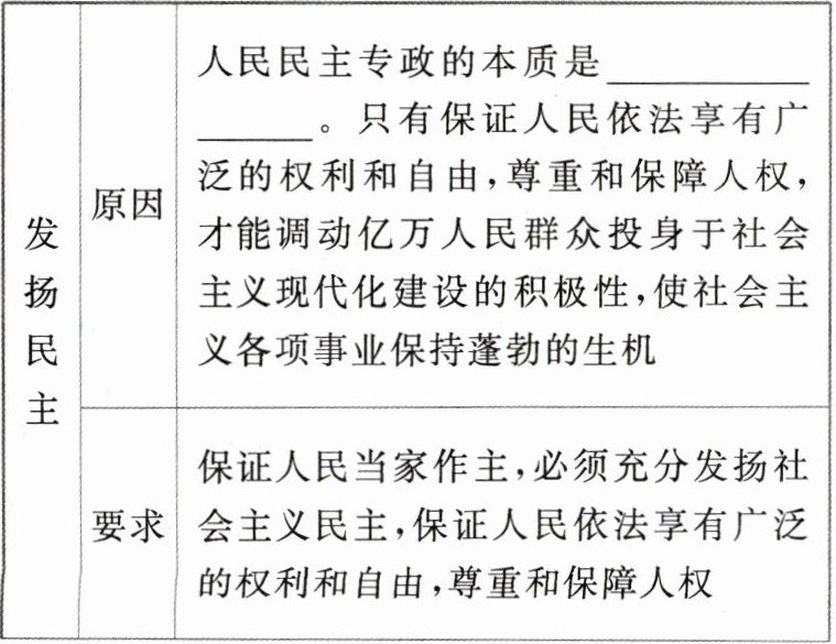 当家作主。②内容:包含对广大人民实行民主和对极少数敌人实行