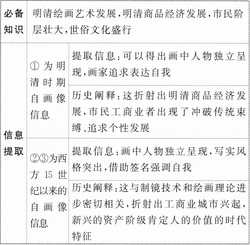阅读材料,提取信息,结合所学,阐释15—17世纪自画像的发展所折射出的中、西方时代特征。