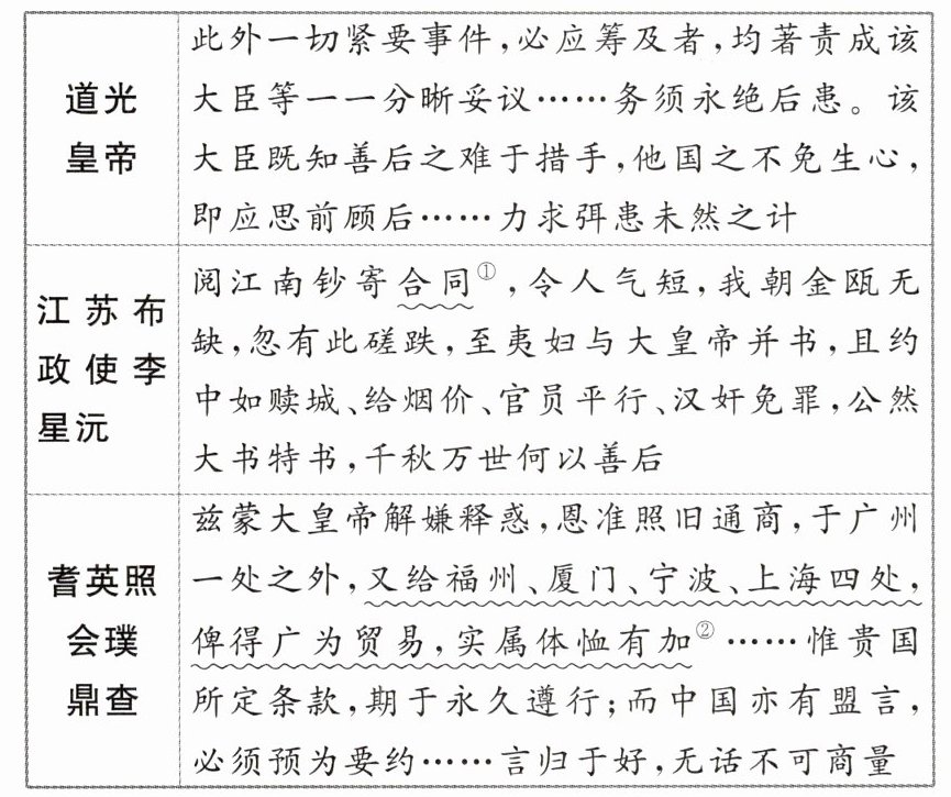 【思考】 根据材料并结合所学知识,概述清朝君臣对《南京条约》的看法,并进行评论。