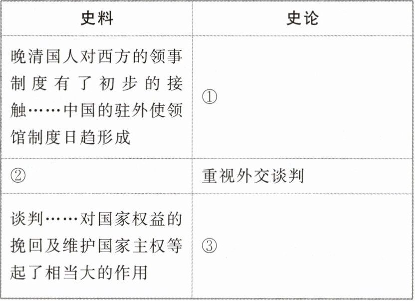 【思考】 根据材料,围绕“晚清时期中国外交领域出现的新现象”,建立史料与史论之间的联系。