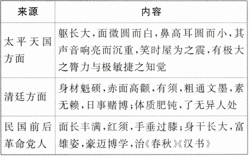 1. (2023湖北卷,7)下表是有关太平天国运动领导人洪秀全的描述,对此解读最准确的是(