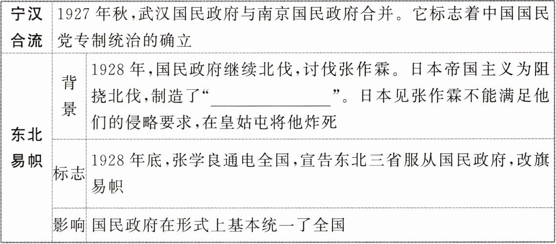 标志:1928年底,张学良通电全国,宣告东北三省服从国民政府,改旗易帜