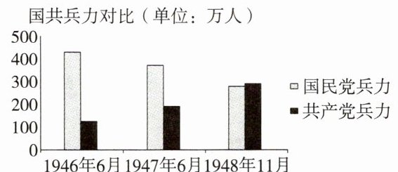 (2018江苏卷,10)下面是解放战争时期国共两党兵力对比图。由此可知,人民军队兵力总数占据优势始于