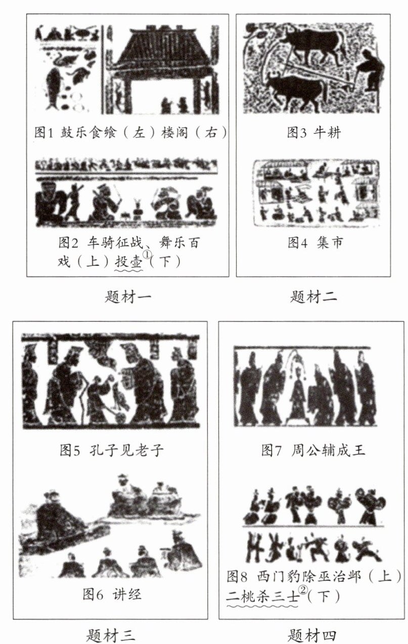 【思考】 结合材料和所学知识,分别指出四个题材反映的汉代社会生活状况。