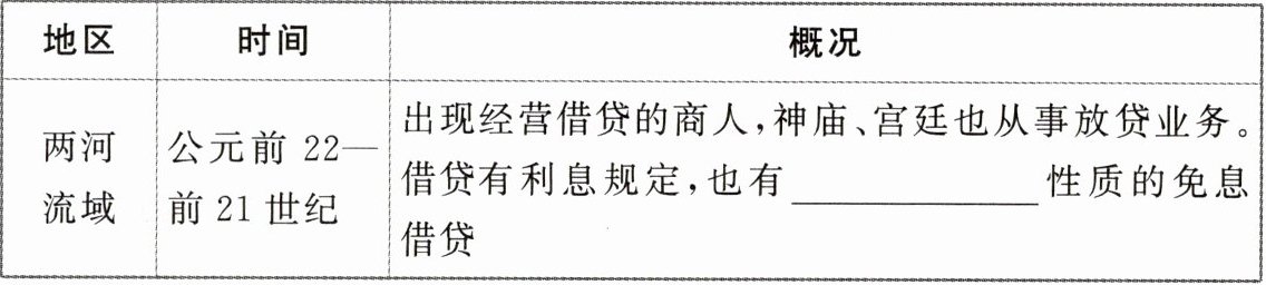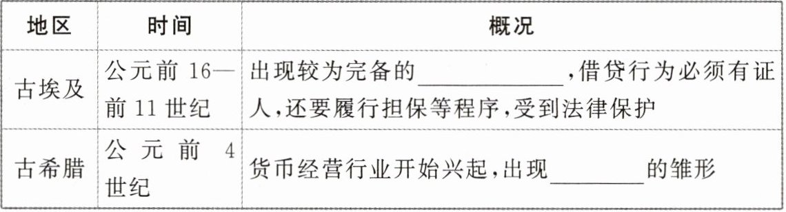 ① 货币:公元前11世纪,古埃及开始用铜块和银块作为货币;公元前8—前7世纪,小亚细亚出现