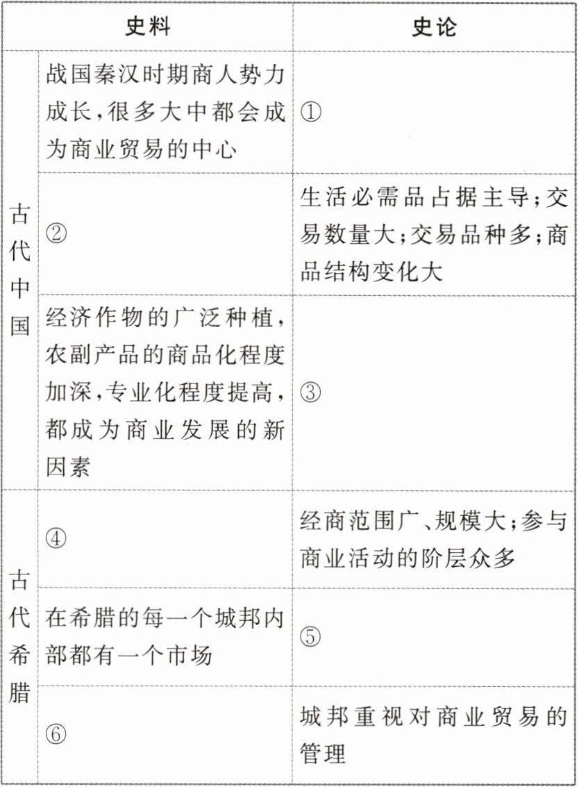 【思考】 根据上述材料,围绕“古代中国和希腊商业发展各自特点”,建立史料与史论之间的联系。