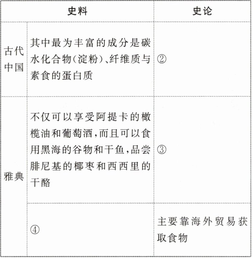 【思考】 根据上述材料,围绕着“古代中国和雅典饮食特点的区别”建立史料与史论之间的联系。