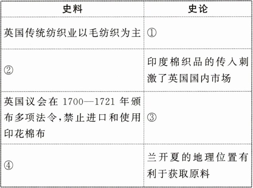 【思考】据材料,围绕“兰开夏成为英国棉纺织业中心的条件”,建立史料与史论之间的联系。