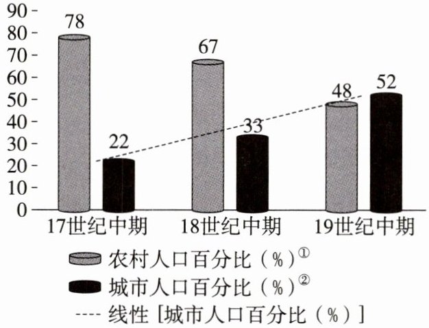 材料 17—19 世纪英国城市和农村人口比重统计表