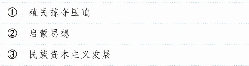 列强的侵略和掠夺加深了亚非拉各国的民族危机,激起了各国人民的斗争意识;思想启蒙促进了殖民地和半殖民地人民的民族民主意识日益增长;民族资本主义得到一定发展,民族资产阶级力量不断壮大。