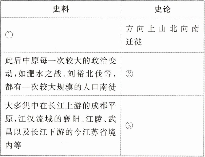 【思考】根据材料,围绕“两晋南北朝时期人口迁徙的主要特点”,建立史料与史论之间的联系。