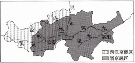 (2023 山东卷,3) 涉考下面是西汉与隋京畿区示意图。